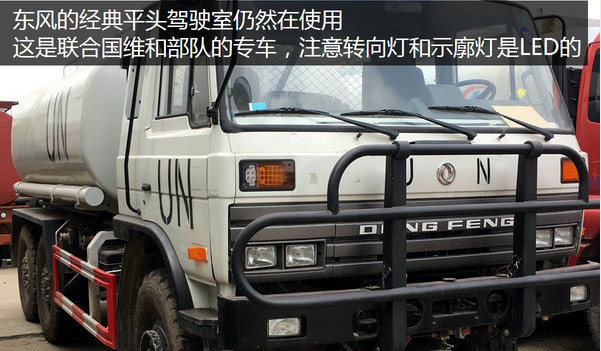 東風(fēng)的經(jīng)典駕駛室仍然在生產(chǎn)并裝車,這個(gè)聯(lián)合國(guó)維和部隊(duì)涂裝的東風(fēng)車采用LED的轉(zhuǎn)向燈和示廓燈,與時(shí)俱進(jìn)。