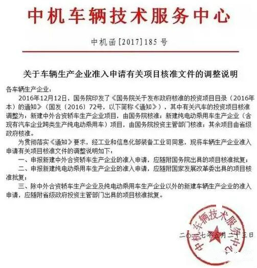 (東正轉(zhuǎn)載)關(guān)于車(chē)輛生產(chǎn)企業(yè)準(zhǔn)入申請(qǐng)有關(guān)事項(xiàng)核準(zhǔn)文件的調(diào)整說(shuō)明