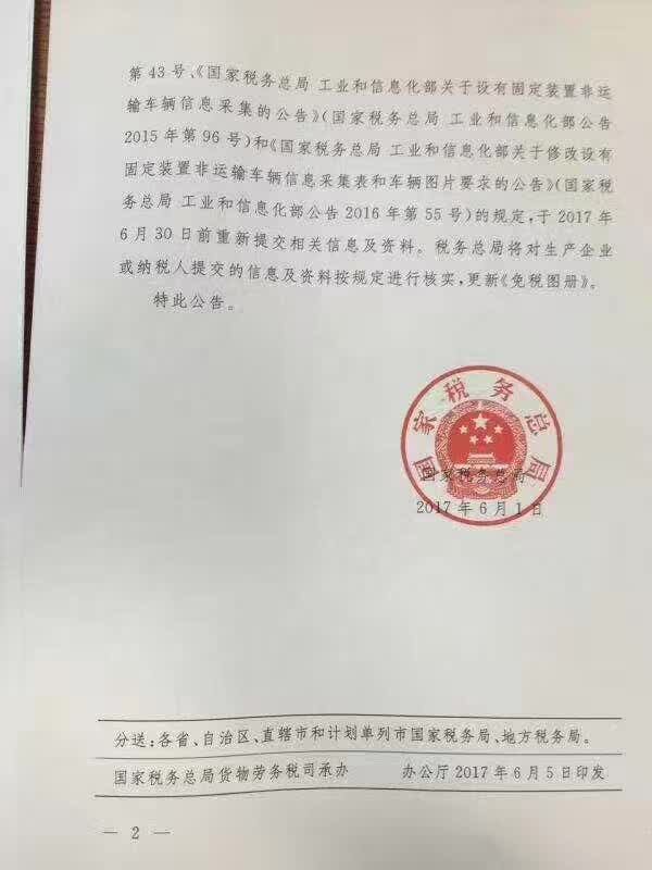 國家稅務(wù)總局關(guān)于設(shè)有固定裝置非運輸車輛免稅圖冊有關(guān)事宜的公告