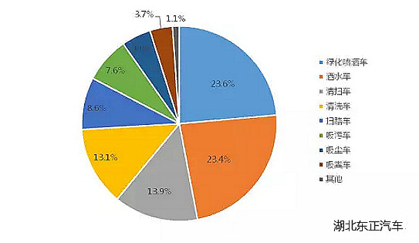 2017年1~7月市政環(huán)衛(wèi)車各細(xì)分市場(chǎng)結(jié)構(gòu)