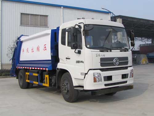 壓縮式垃圾車由汽車二類底盤(pán)、密封式壓縮垃圾廂、液壓系統(tǒng)、操作系統(tǒng)組成。整車為全密封型,自動(dòng)壓縮、自行傾倒、壓縮過(guò)程中的污水全部進(jìn)入污水箱,較為徹底的解決了垃圾運(yùn)輸過(guò)程中的二次污染的問(wèn)題,關(guān)鍵部件采用進(jìn)口部件,具有壓力大、密封性好、操作方便、安全等優(yōu)點(diǎn)?蛇x配后掛桶翻轉(zhuǎn)機(jī)構(gòu)或垃圾斗翻轉(zhuǎn)機(jī)構(gòu)以及后翻轉(zhuǎn)式幾種車型;是用于城鎮(zhèn)袋裝、桶裝、散裝生活垃圾物的收集、運(yùn)輸、卸料作業(yè)的專用車輛。垃圾被車載垃圾推進(jìn)器又稱負(fù)壓機(jī)構(gòu)推壓入車箱,從而使垃圾較高密度、較均勻地分布在車箱內(nèi),直至裝滿為止;該垃圾車的收運(yùn)方式是目前世界上廣泛采用的垃圾收運(yùn)方式,其專用裝置的功能均以汽車發(fā)動(dòng)機(jī)為動(dòng)力,通過(guò)液壓機(jī)構(gòu)手動(dòng)或電控操作來(lái)實(shí)現(xiàn)。壓縮式垃圾車的箱體、裝填器又稱斗體及污水箱均采用優(yōu)質(zhì)炭鋼板全密封焊接結(jié)構(gòu),具有強(qiáng)度高、重量輕、不產(chǎn)生二次污染等優(yōu)點(diǎn)。