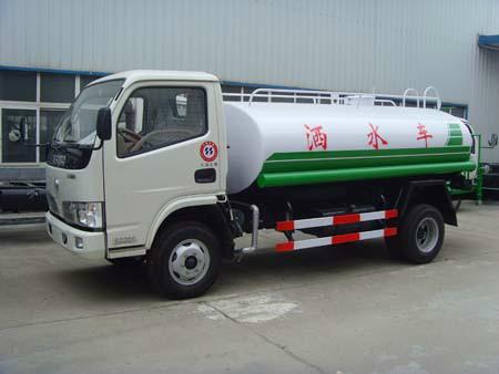 4選配裝置:灑水車前裝有鴨嘴形噴嘴或圓頭沖嘴,后面裝有圓柱形灑水噴嘴或蓮蓬頭噴嘴,后部有工作平臺,裝配有水炮。后部還可裝壓塵噴霧裝置噴嘴。可選配20米綠化噴藥卷盤、高空作業(yè)、隨車吊貨運等功能。