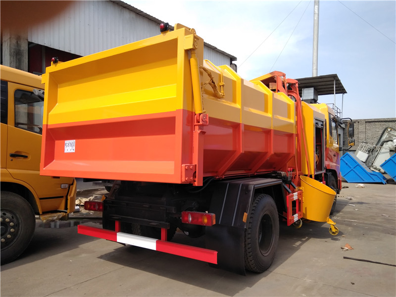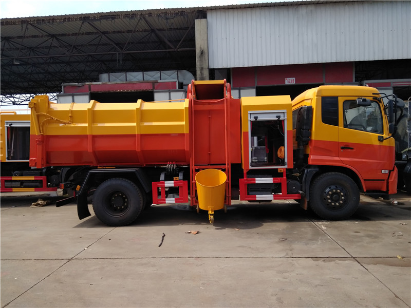 掛桶式糞污糞便清運(yùn)車配掛桶提升機(jī),可配合垃圾桶使用,通過液壓提升裝置可將垃圾桶內(nèi)污泥、糞污慢慢提升傾倒入車廂內(nèi),裝滿后運(yùn)輸?shù)绞占c(diǎn)進(jìn)行自卸式傾倒。適用于全國(guó)通用標(biāo)準(zhǔn)的120升、240升垃圾桶,鐵桶、塑料桶等。優(yōu)點(diǎn)在于一臺(tái)車可配多個(gè)垃圾桶使用,密封好,運(yùn)輸途中滴水不漏,駕駛室內(nèi)外兩用操控,司機(jī)師傅不下車在駕駛室內(nèi)即可完成箱體卸料。廣泛用于收運(yùn)含水污泥、糞污糞便、含水垃圾、淤泥等。