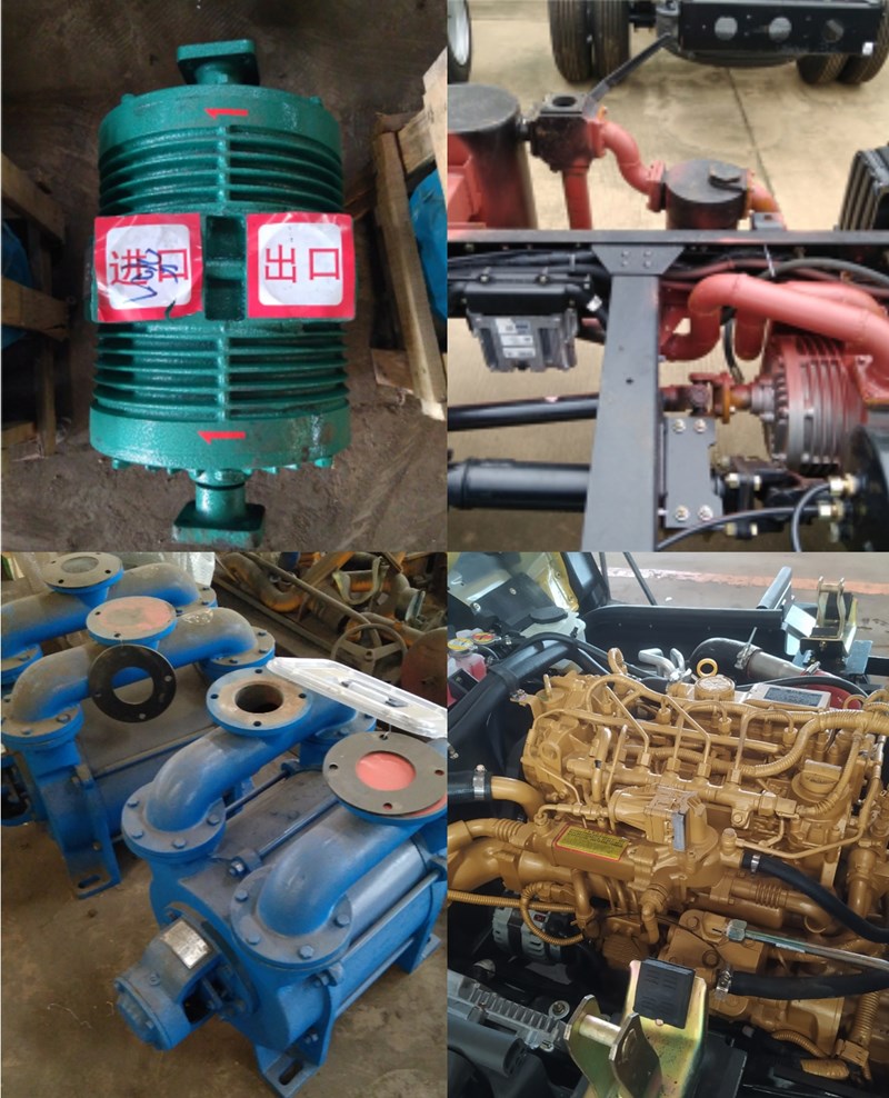 吸糞車專用部分由取力器、傳動(dòng)軸、真空吸污泵、油水分離器、水氣分離器、防溢閥、壓力罐體、液壓部分,管網(wǎng)系統(tǒng)、吸污導(dǎo)管、自流閥、真空壓力表、視糞窗、洗手裝置等組成。罐體采用Q235碳鋼板制作,罐體封頭一次壓鑄成型,吸污導(dǎo)管可自吸自排,隨車配置大功率真空吸污泵。
