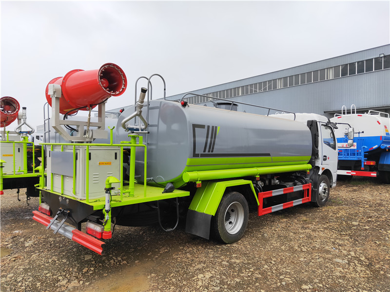灑水車工作主要由發(fā)動機(jī)帶動變速箱,變速箱上安裝的取力器帶動灑水車水泵產(chǎn)生動力,將罐體內(nèi)部的水通過管路噴灑出去,水泵可自吸自排。可根據(jù)用戶需求選配抑塵霧炮。