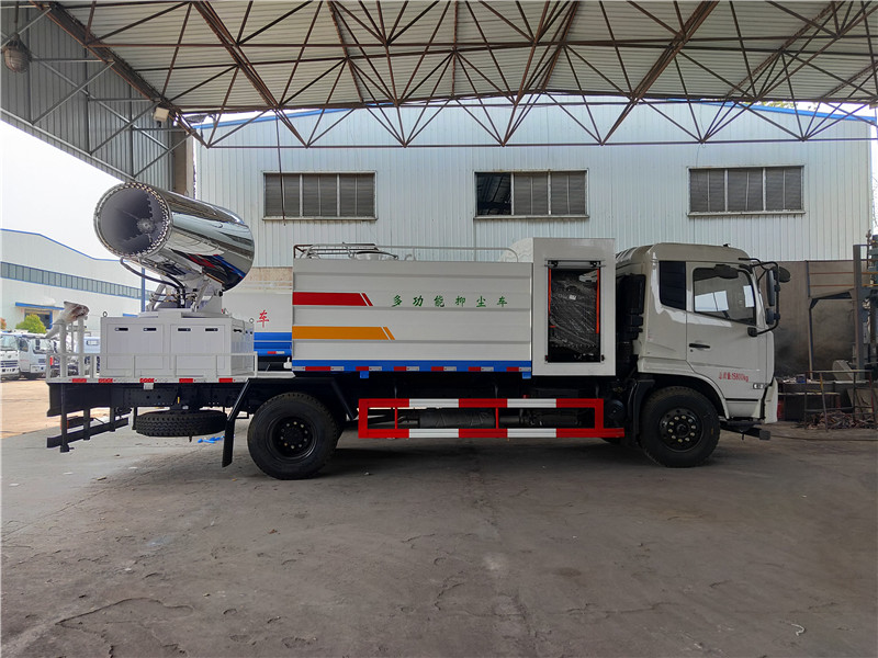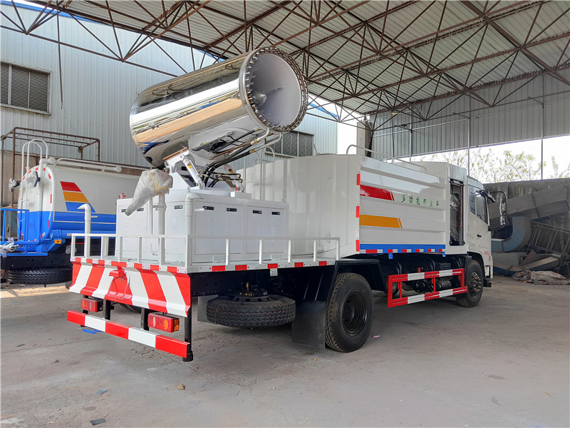 灑水車工作主要由發(fā)動(dòng)機(jī)帶動(dòng)變速箱,變速箱上安裝的取力器帶動(dòng)灑水車水泵產(chǎn)生動(dòng)力,將罐體內(nèi)部的水通過(guò)管路噴灑出去,水泵可自吸自排?筛鶕(jù)用戶需求選配抑塵霧炮。
