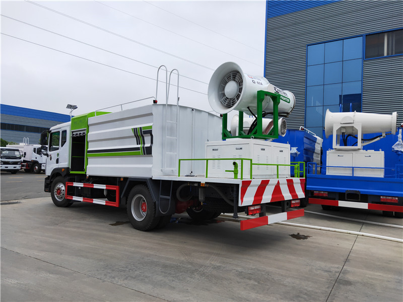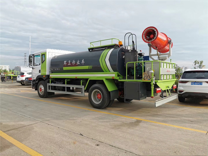 灑水車(chē)工作主要由發(fā)動(dòng)機(jī)帶動(dòng)變速箱,變速箱上安裝的取力器帶動(dòng)灑水車(chē)水泵產(chǎn)生動(dòng)力,將罐體內(nèi)部的水通過(guò)管路噴灑出去,水泵可自吸自排。可根據(jù)用戶需求選配抑塵霧炮。